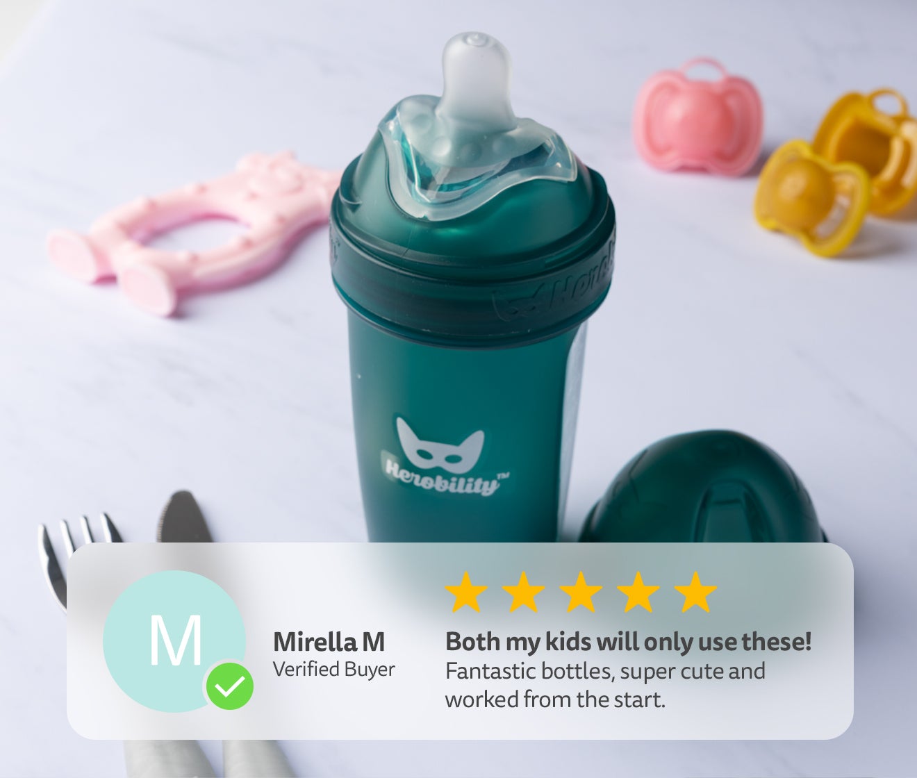 Molti genitori che hanno avuto difficoltà a far accettare il biberon ai loro bambini hanno trovato soluzione con l’Herobility Baby Bottle. Grazie alla sua forma naturale, la tettarella facilita la combinazione tra allattamento al seno e biberon.
