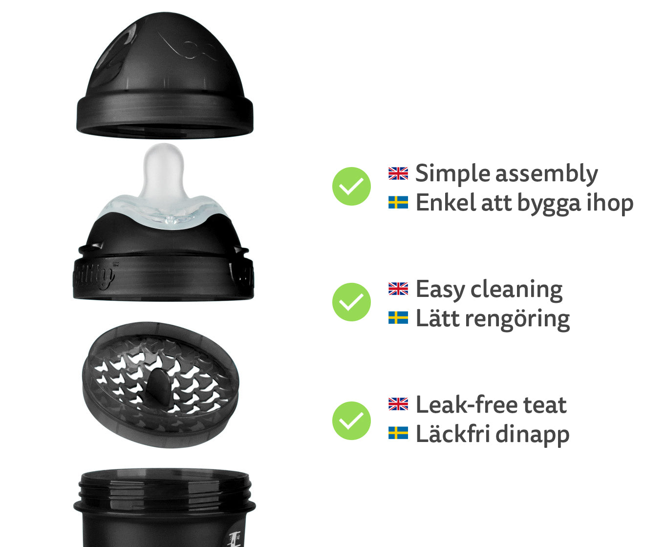 La rete e il coperchio mixer rendono semplice mescolare direttamente nella bottiglia, ad esempio latte artificiale o pappe, garantendo una miscela liscia e senza grumi.