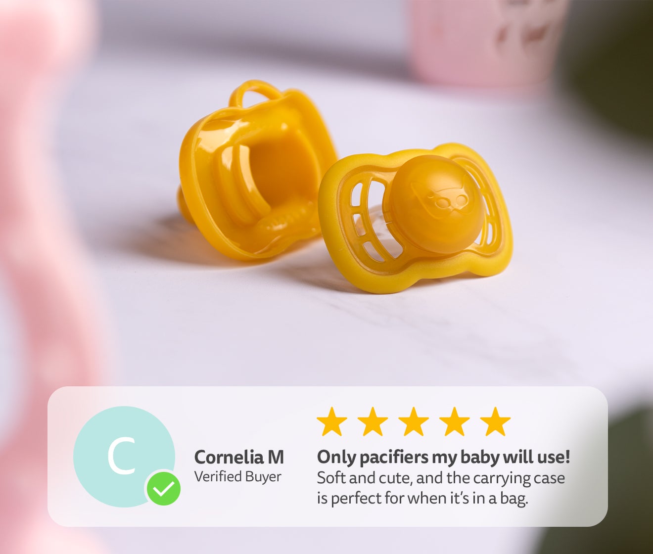 Herobilitys nappar är utvecklade med bebisen i fokus. Nappen tröstar, hjälper bebisen att känna trygghet och komma till ro, många bebisar somnar lättare med nappen i munnen.