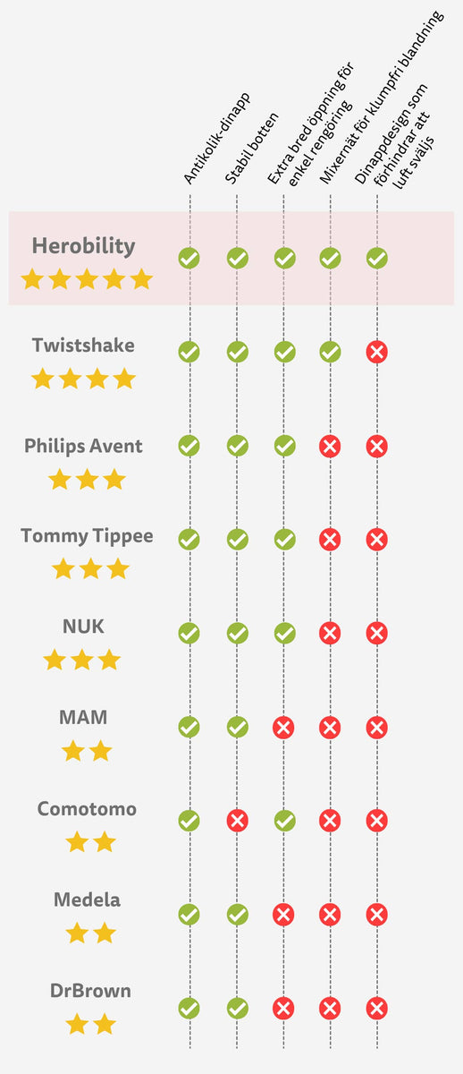 Il biberon pluripremiato di Herobility, con doppio sistema anti-colica, offre un’allattamento facile e sicuro già dal primo utilizzo. L’ampia apertura lo rende facile da pulire e sicuro per il microonde. Sviluppato in Svezia e nominato il miglior biberon della Svezia.
