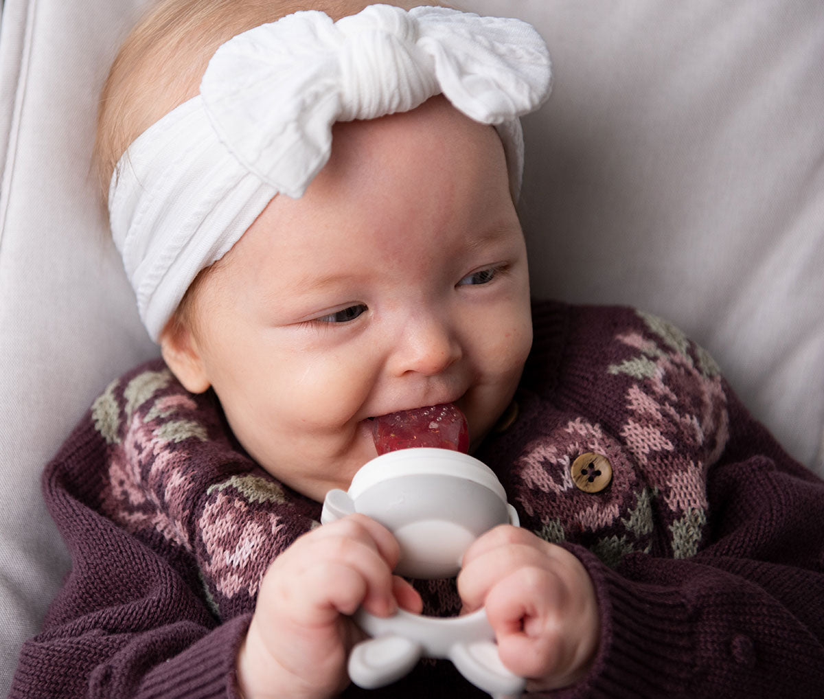Il succhietto può essere utilizzato con alimenti freddi o congelati, offrendo sollievo alle gengive irritate durante la fase di dentizione.